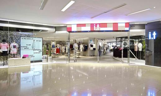 全港最大的两层式i.t旗舰店已于7月17日进驻太古城中心。承袭i.t店面一贯的设计风格,面积达15,230平方呎的新店装潢用上了大量木材,配合黑白两色作主调,营造出简约与型格并重的舒适购物环境。全新i.t旗舰店融合了各种风格的品牌及产品,上层由大热韩牌STYLENANDA及其自家化妆品品牌3 CONCEPT EYES、充满个性的日系服饰as know as da base、earth music & ecology及mysty woman,以至b+ab、mini cream及tout à coup等自家女装品牌作主导;而下层则有男装品牌5cm、AAPE BY A BATHING APE®及double-park等,为时尚爱好者提供一站式的购物体验。